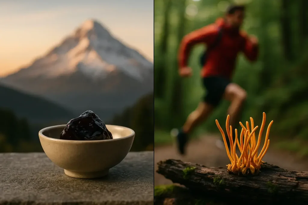 Shilajit = vitalité de fond, hormones, stress, récupération globale. Cordyceps = performance aérobie, VO2 max, énergie à l’effort. Les deux se complètent bien si tu fais du sport sérieusement. Qualité obligatoire dans les deux cas — un shilajit mal purifié, c’est inutile au mieux, toxique au pire.